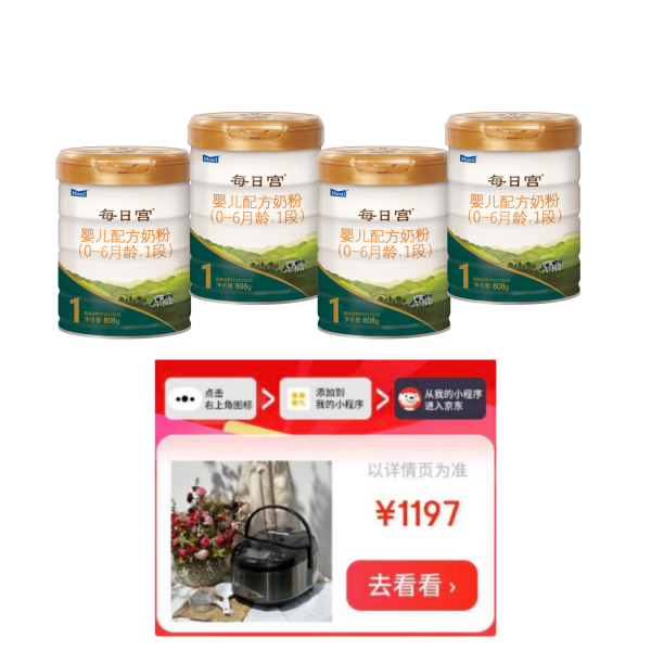 【1段】每日宫奶粉4听1段+价值1197元韩国智能电饭煲